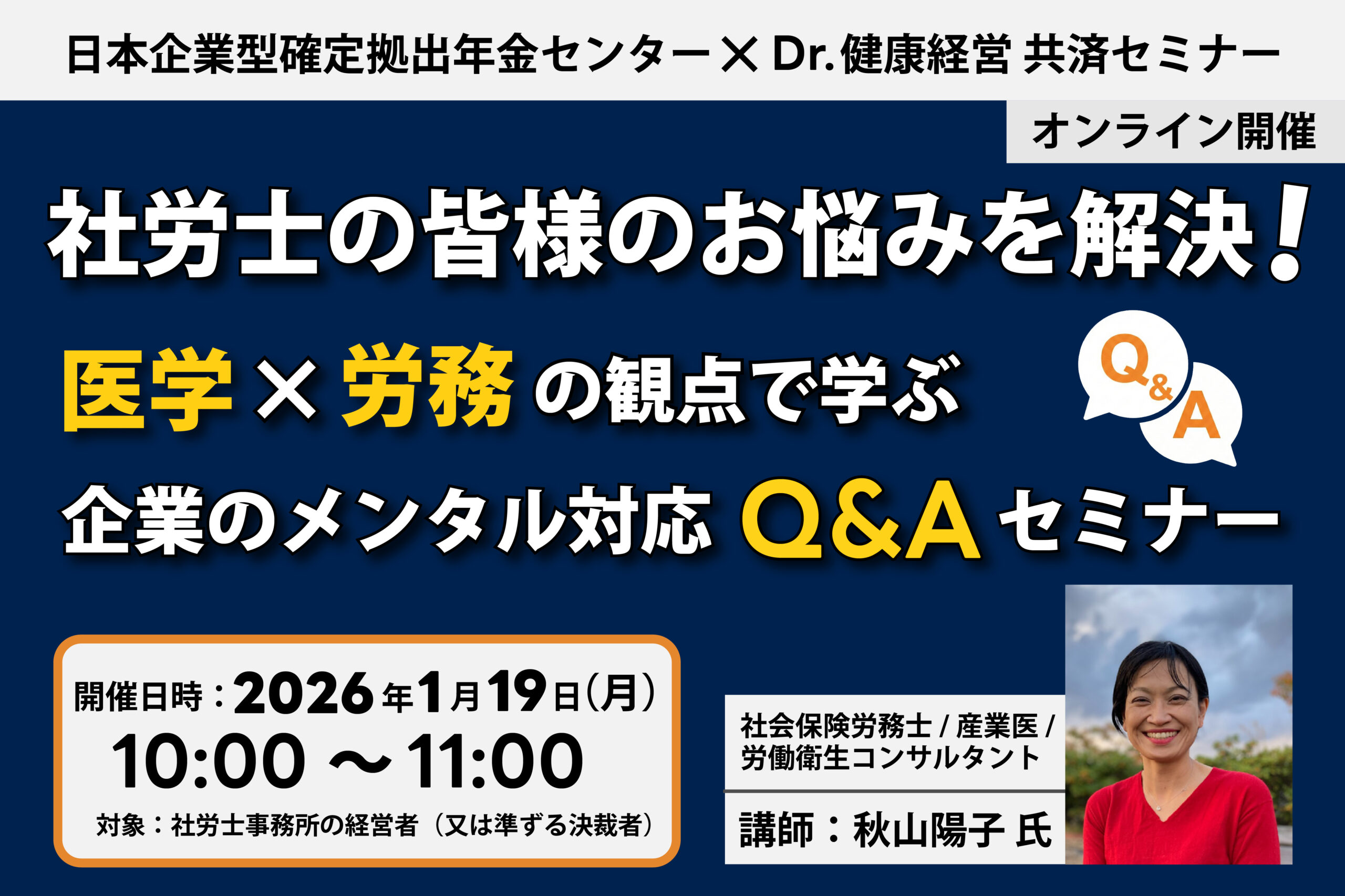 社労士の皆様のお悩みを解決!医学×労務の観点で学ぶ企業のメンタル対応Q&Aセミナー